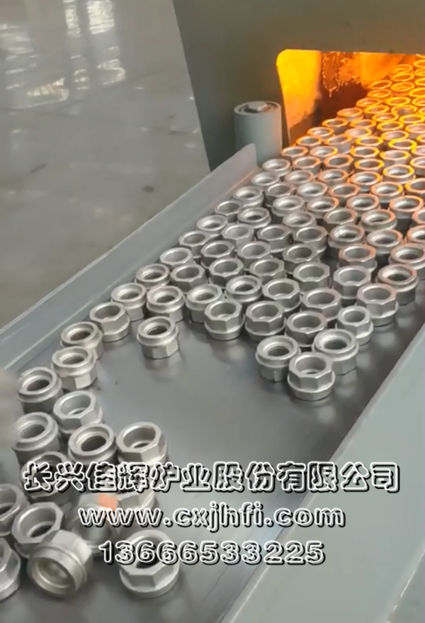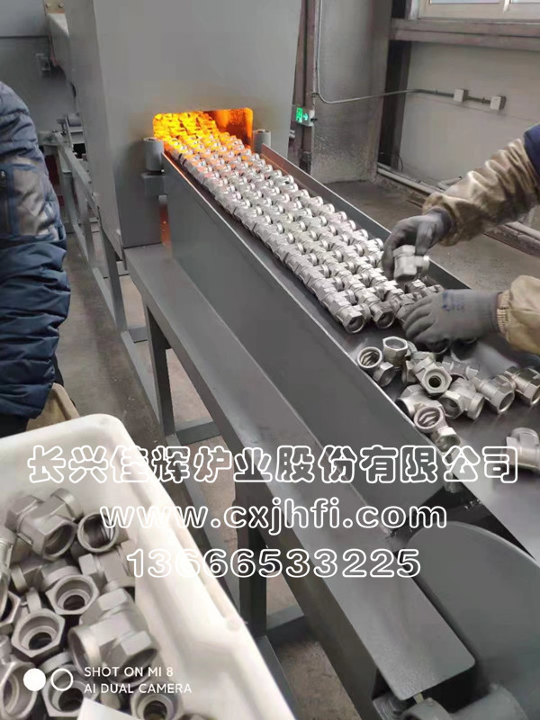 不銹鋼球閥體(閥殼)光亮退火爐 此設(shè)備可根據(jù)用戶要求進(jìn)行定制、定做,服務(wù)熱線:13666533225 RST型不銹鋼球閥體(閥殼)光亮退火爐,適用于不銹鋼球閥體(閥殼)及其他不銹鋼管件、拉伸件、零部件等在可控氣氛(氫氮混合氣體)保護(hù)下,進(jìn)行光亮固溶、去應(yīng)力退火、消磁等熱處理工藝的專用設(shè)備。 金屬及奧氏體產(chǎn)品在彎曲、拉伸、鍛壓、切削、鑄造、焊接等加工 不銹鋼產(chǎn)品退火溫度:950~1080℃,在此溫度下為防止產(chǎn)品與空氣接觸產(chǎn)生氧化(變黑),我公司采用氫氮混合氣體進(jìn)行保護(hù),保證產(chǎn)品進(jìn)爐前和出爐后的顏色及光澤度一致。 產(chǎn)品退火處理后,表面光亮無氧化,內(nèi)應(yīng)力消除,便于后期的繼續(xù)拉伸或成品出貨。本設(shè)備取代傳統(tǒng)的退火處理(傳統(tǒng)的高頻退火處理后,產(chǎn)品表面氧化成黑色,需進(jìn)行后序的酸洗處理,污染環(huán)境),本生產(chǎn)線大大提高了生產(chǎn)效率,降低勞動(dòng)強(qiáng)度及成本,改善工人的勞動(dòng)環(huán)境,達(dá)到高效、節(jié)能、環(huán)保的要求。 該生產(chǎn)線具有控制先進(jìn)、節(jié)能顯著、維修方便等特點(diǎn),工件輸送采用耐高溫金屬鋼帶或網(wǎng)帶變頻調(diào)速,全線加熱區(qū)均采用PID自動(dòng)多區(qū)控溫。
